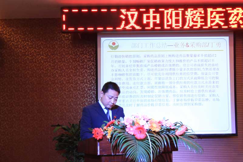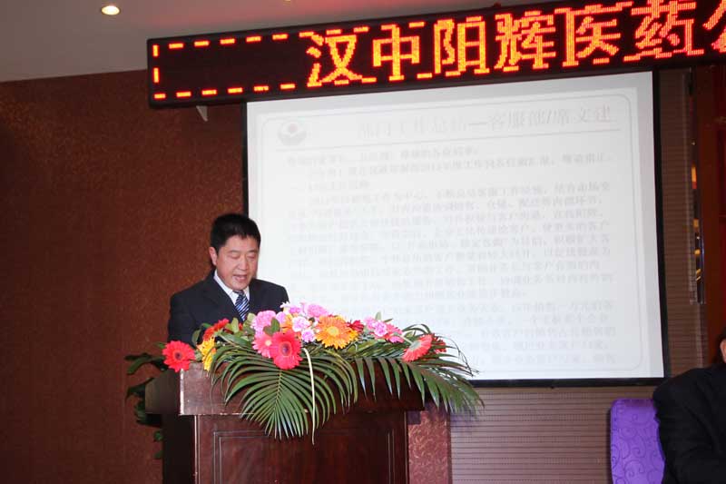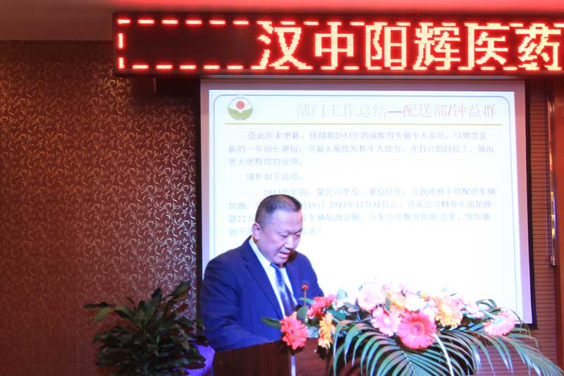 2014年會報道(1/3) 漢中陽輝醫藥有限責任公司 >2013年度工作總結暨2014新春團拜會 2014年1月18日下午,漢中陽輝醫藥有限責任公司2013年度工作總結暨2014新春團拜會在漢中紫晶時尚酒店舉行。 一、各部門負責人做2013年度工作總結及2014年工作安排