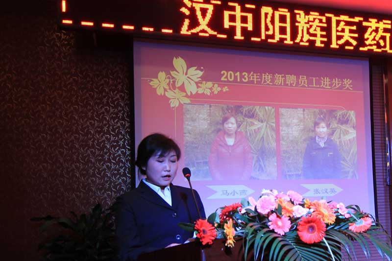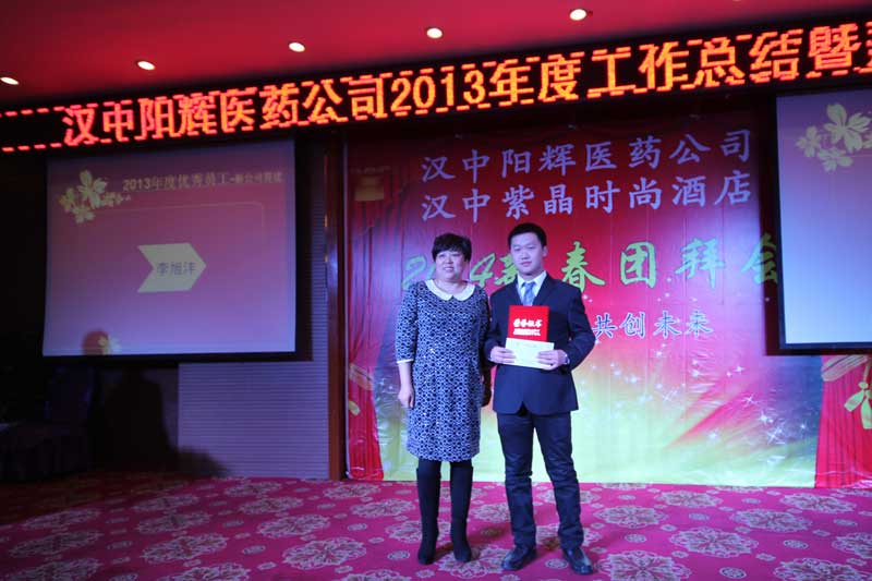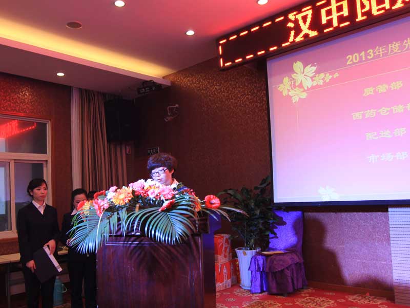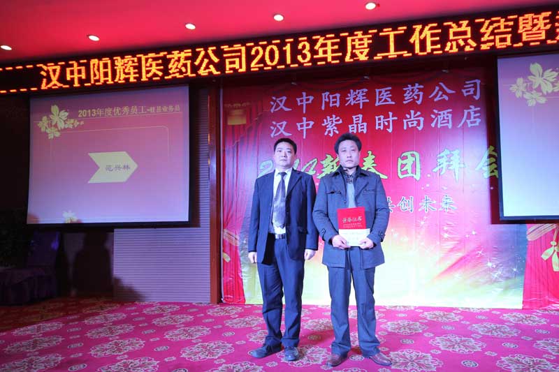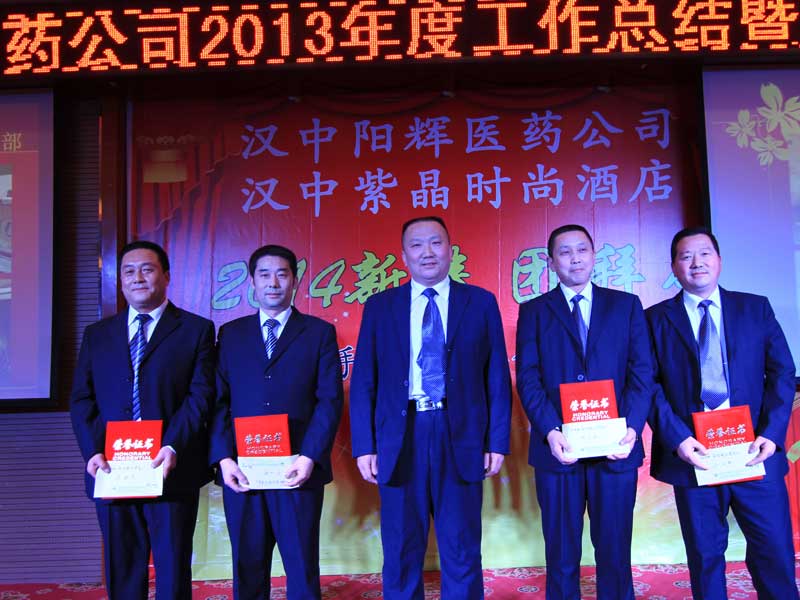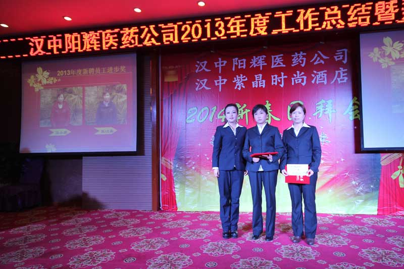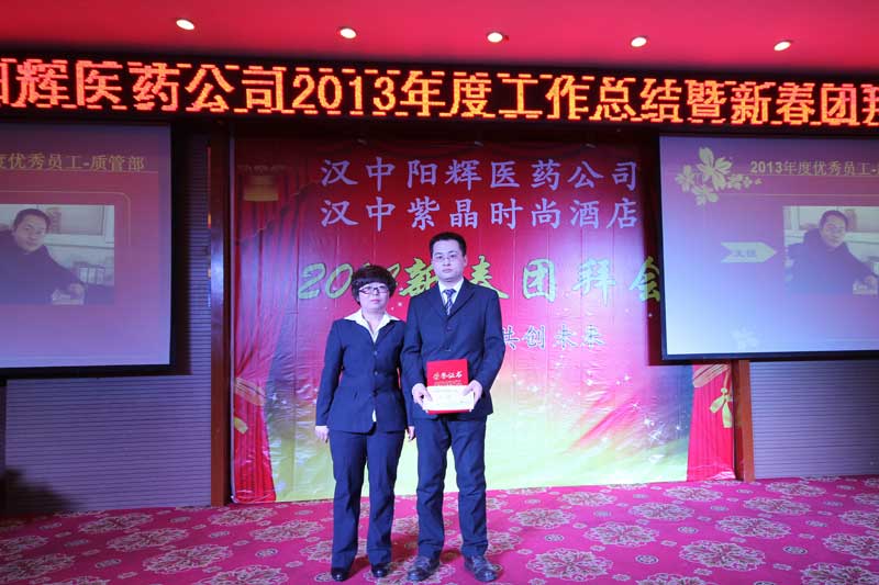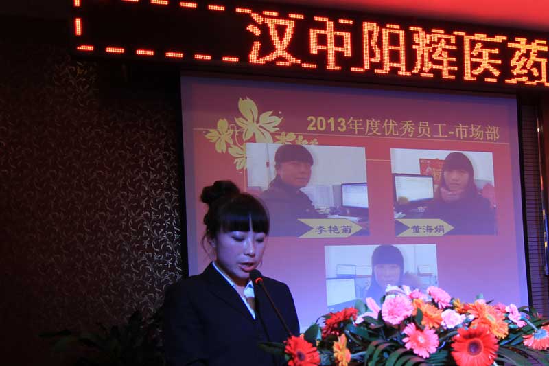 2014年會報道(2/3) 漢中陽輝醫(yī)藥有限責(zé)任公司 >2013年度工作總結(jié)暨2014新春團(tuán)拜會 2014年1月18日下午,漢中陽輝醫(yī)藥有限責(zé)任公司2013年度工作總結(jié)暨2014新春團(tuán)拜會在漢中紫晶時尚酒店舉行。 二、2013年度先進(jìn)部門和優(yōu)秀員工頒獎儀式